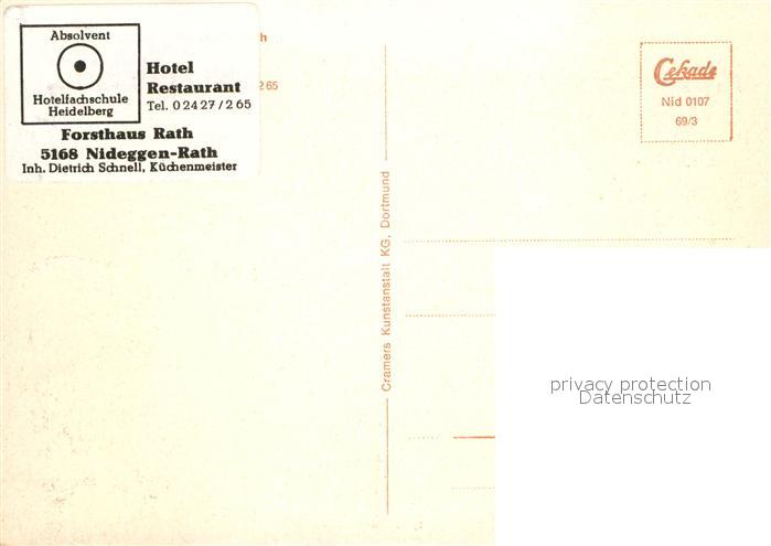 72947045 Rath Nideggen Hotel Restaurant Forsthaus Rath postalisch nicht gelaufen Erhaltung siehe scans [LiesaD40] KatCode: 11110005358044