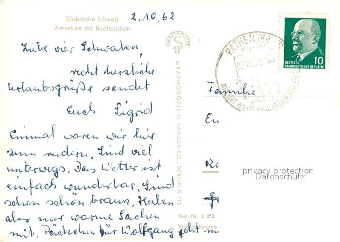 72925671 alte Postkarte Rathen Saechsische Schweiz Amselsee Bootsstation postalisch gelaufen Erhaltung siehe scans [PaolaD17] KatCode: 11110014287310
