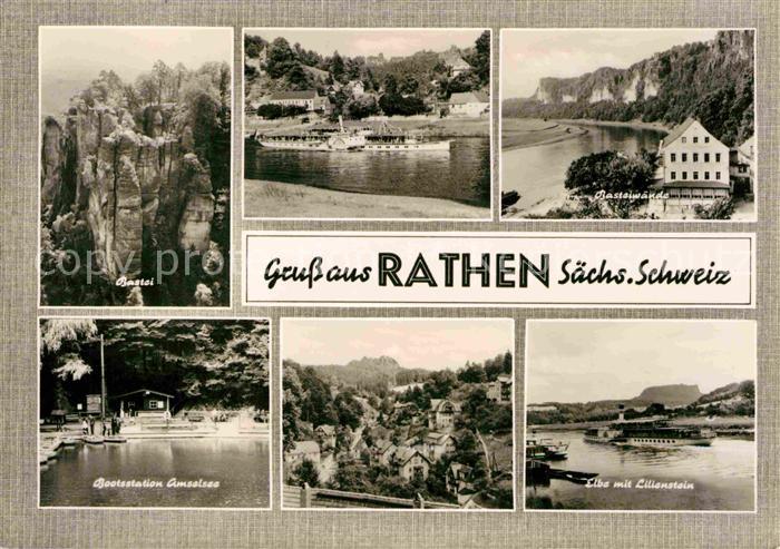 72705106 alte Postkarte Rathen Saechsische Schweiz Bastei Bootsstation Amselsee Elbe Lilienstein postalisch gelaufen Erhaltung siehe scans [AndreD76] KatCode: 11110014287310