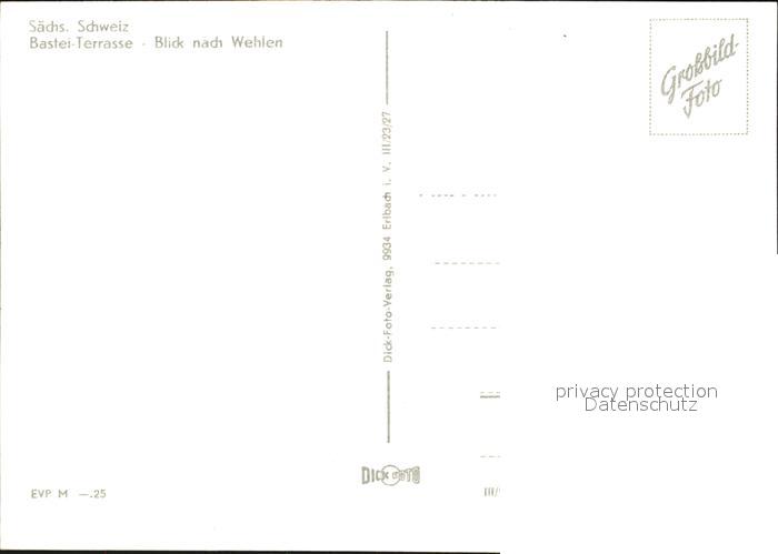 Rathen Saechsische Schweiz Bastei Terrasse Blick nach Wehlen Elbsandsteingebirge postalisch nicht gelaufen Erhaltung siehe scans