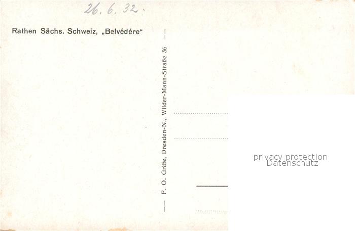 73362797 Rathen Saechsische Schweiz Belvedere postalisch nicht gelaufen Erhaltung siehe scans [LiesaD40] KatCode: 11110014287310