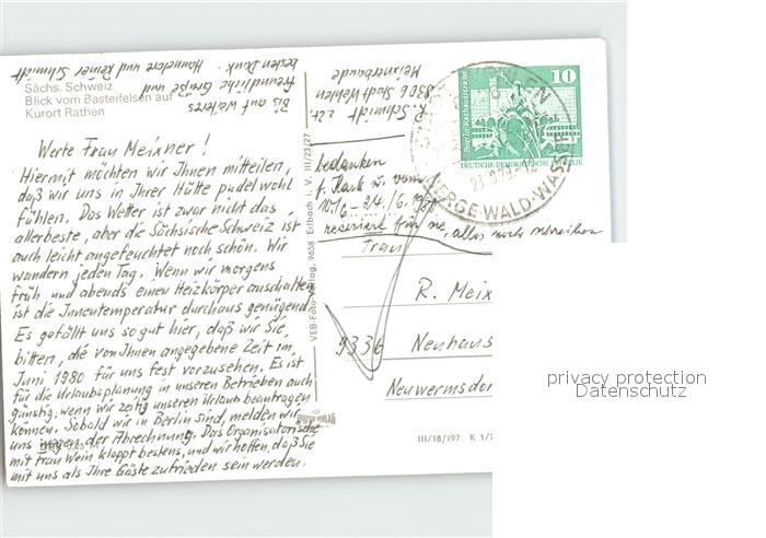 72384174 alte Postkarte Rathen Saechsische Schweiz Blick vom Basteifelsen postalisch gelaufen Erhaltung siehe scans KatCode: 11110014287310