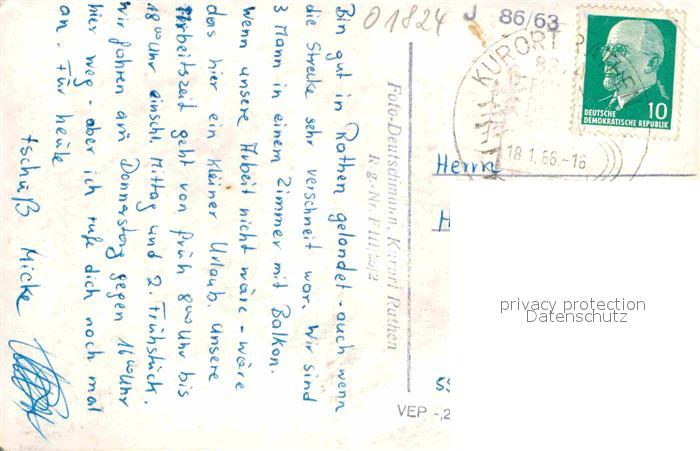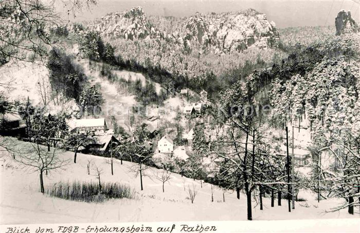 72640876 alte Postkarte Rathen Saechsische Schweiz Blick vom Erholungsheim postalisch gelaufen Erhaltung siehe scans [AndreD76] KatCode: 11110014287310