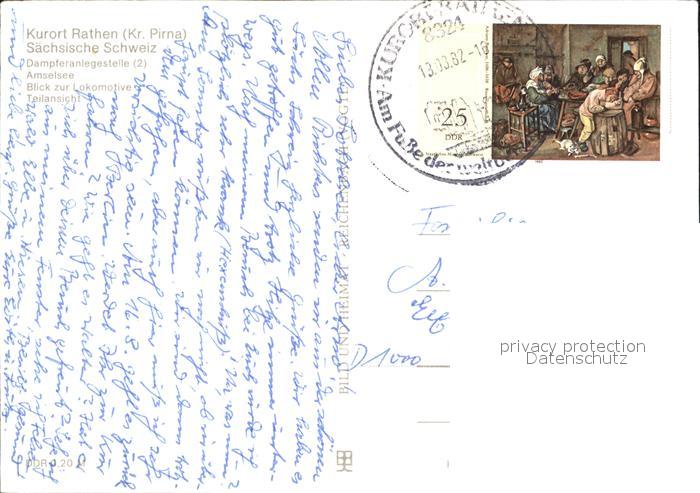 72294681 alte Postkarte Rathen Saechsische Schweiz Damfperanlegestelle Amselsee Lokomotive postalisch gelaufen Erhaltung siehe scans KatCode: 11110014287310