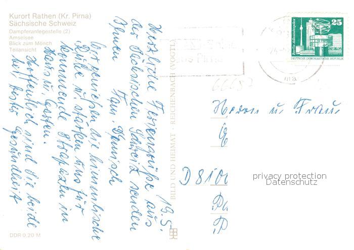 73107327 alte Postkarte Rathen Saechsische Schweiz Dampferanlegestelle Amselsee Moench postalisch gelaufen Erhaltung siehe scans [NatalD47] KatCode: 11110014287310