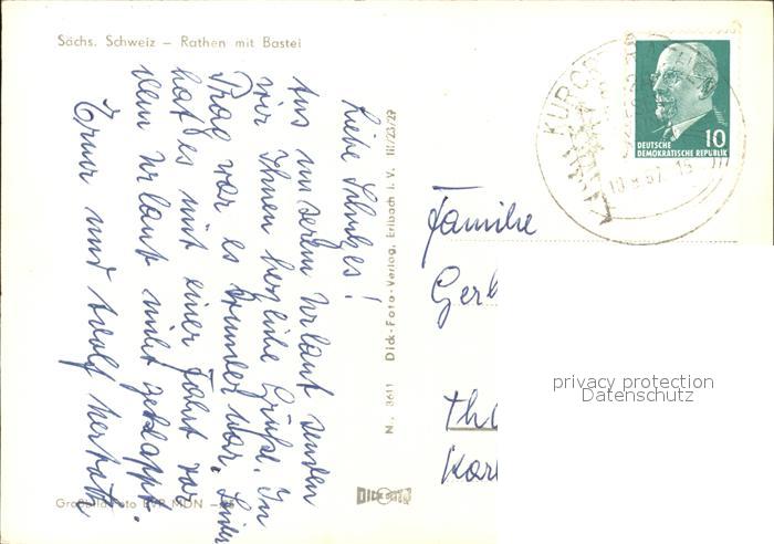 72341708 alte Postkarte Rathen Saechsische Schweiz Elbe Dampfer Bastei Elbsandsteingebirge postalisch gelaufen Erhaltung siehe scans KatCode: 11110014287310