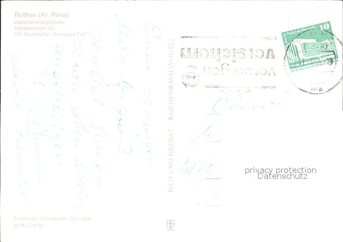 72354897 alte Postkarte Rathen Saechsische Schweiz Elbe Dampferanlegestelle HO Gaststaette Sonniges Eck Elbsandsteingebirge postalisch gelaufen Erhaltung siehe scans KatCode: 11110014287310