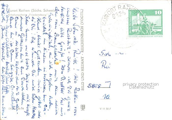 71939548 alte Postkarte Rathen Saechsische Schweiz Erholungsheim Freidensburg postalisch gelaufen Erhaltung siehe scans KatCode: 11110014287310