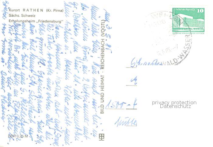 73785033 alte Postkarte Rathen Saechsische Schweiz Erholungsheim Friedensburg Aussenansicht postalisch gelaufen Erhaltung siehe scans [LiesaD40] KatCode: 11110014287310