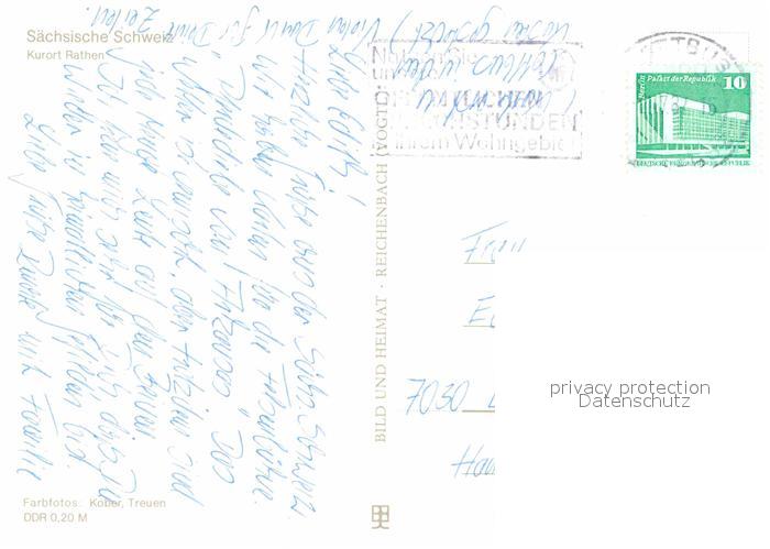 72851801 alte Postkarte Rathen Saechsische Schweiz Felsenbuehne postalisch gelaufen Erhaltung siehe scans [AndreD76] KatCode: 11110014287310