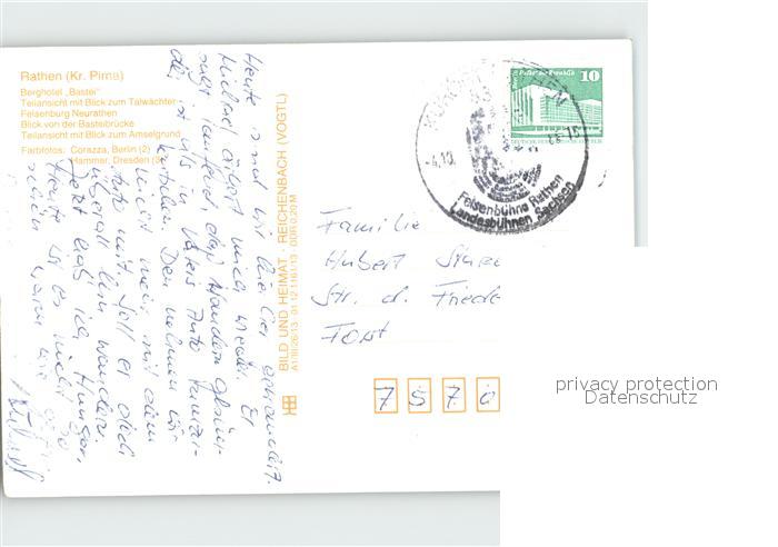 72362265 alte Postkarte Rathen Saechsische Schweiz Felsenburg Neurathen Berghotel-Bastei postalisch gelaufen Erhaltung siehe scans KatCode: 11110014287310