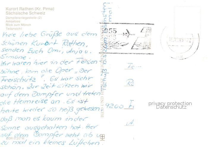 73023933 alte Postkarte Rathen Saechsische Schweiz Fliegeraufnahme Amselsee Moench postalisch gelaufen Erhaltung siehe scans [KathaD81] KatCode: 11110014287310