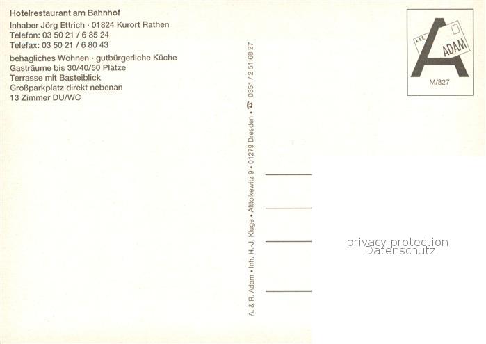 73744884 Rathen Saechsische Schweiz Fliegeraufnahme Hotel Restaurant am Bahnhof Terrasse Gaststube Zimmer postalisch nicht gelaufen Erhaltung siehe scans [FriedD77] KatCode: 11110014287310