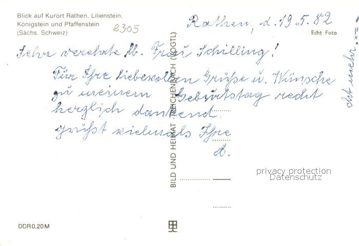 73701622 alte Postkarte Rathen Saechsische Schweiz Fliegeraufnahme mit Lilienstein Koenigstein und Pfaffenstein postalisch gelaufen Erhaltung siehe scans [WerneD78] KatCode: 11110014287310