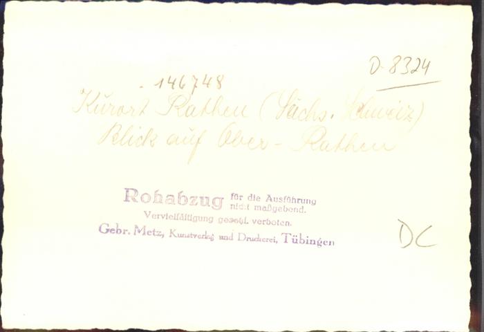 40971212 Rathen Saechsische Schweiz [Handschriftlich] KatCode 11110014287310