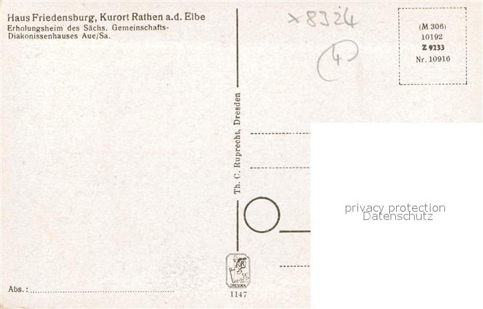 72981867 Rathen Saechsische Schweiz Haus Friedensburg Erholungsheim postalisch nicht gelaufen Erhaltung siehe scans [FriedD77] KatCode: 11110014287310