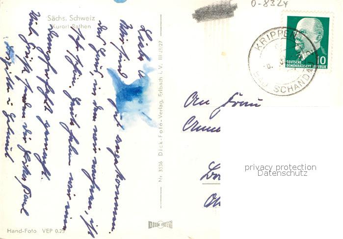 72982892 alte Postkarte Rathen Saechsische Schweiz Hotel Erbgericht Elbepartie postalisch gelaufen Erhaltung siehe scans [WerneD78] KatCode: 11110014287310
