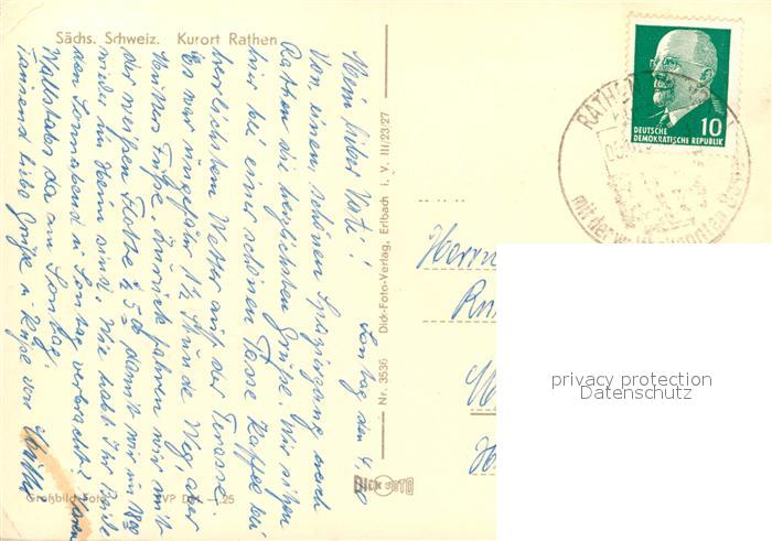 73100567 alte Postkarte Rathen Saechsische Schweiz Hotel Erbgericht postalisch gelaufen Erhaltung siehe scans [KathaD81] KatCode: 11110014287310