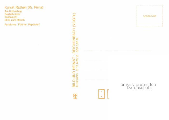 72913631 Rathen Saechsische Schweiz Kottesteig Basteibruecke Moench postalisch nicht gelaufen Erhaltung siehe scans [LiesaD40] KatCode: 11110014287310