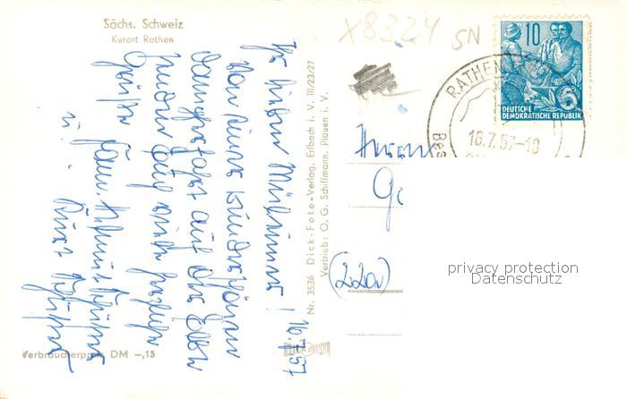 73096120 alte Postkarte Rathen Saechsische Schweiz Panorama Hotel Erbgericht postalisch gelaufen Erhaltung siehe scans [KathaD81] KatCode: 11110014287310