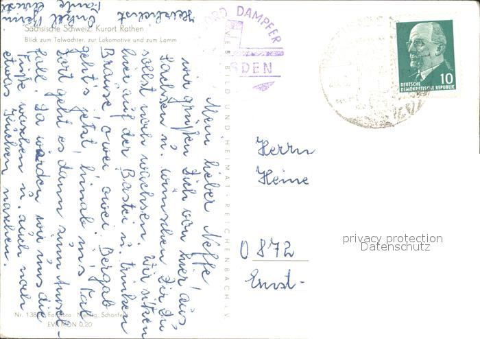 72349268 alte Postkarte Rathen Saechsische Schweiz Talwaechter Lokomotive Lamm Schiff Dresden postalisch gelaufen Erhaltung siehe scans KatCode: 11110014287310
