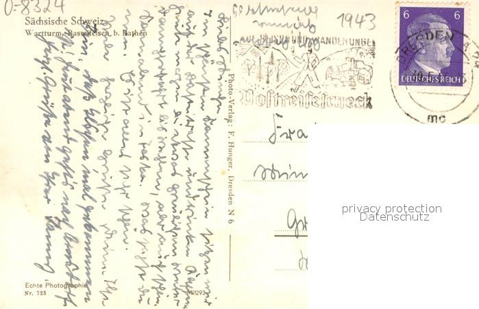 73698003 alte Postkarte Rathen Saechsische Schweiz Wartturm Basteifelsen postalisch gelaufen Erhaltung siehe scans [LiesaD40] KatCode: 11110014287310