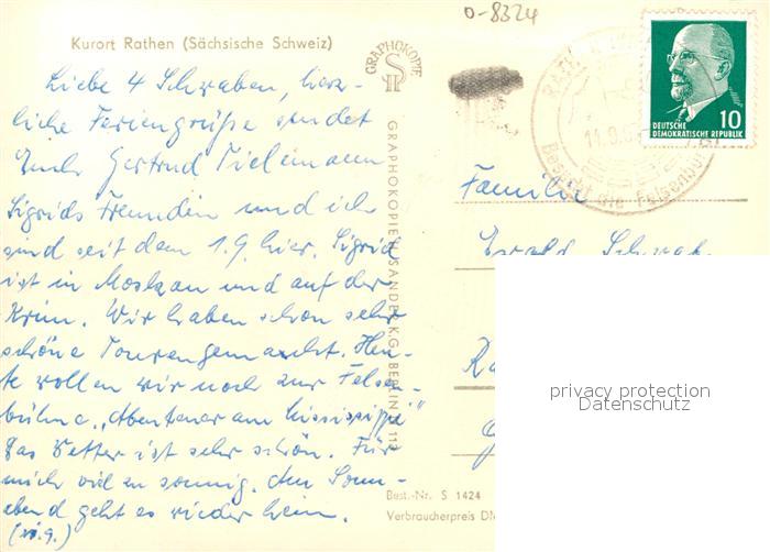 72925808 alte Postkarte Rathen Saechsische Schweiz postalisch gelaufen Erhaltung siehe scans [PaolaD17] KatCode: 11110014287310