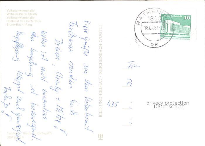 72333827 alte Postkarte Rathenow Volksschwimmbad Denkmal des Kurfuersten Bruno Baum Ring postalisch gelaufen Erhaltung siehe scans KatCode: 11110012063252