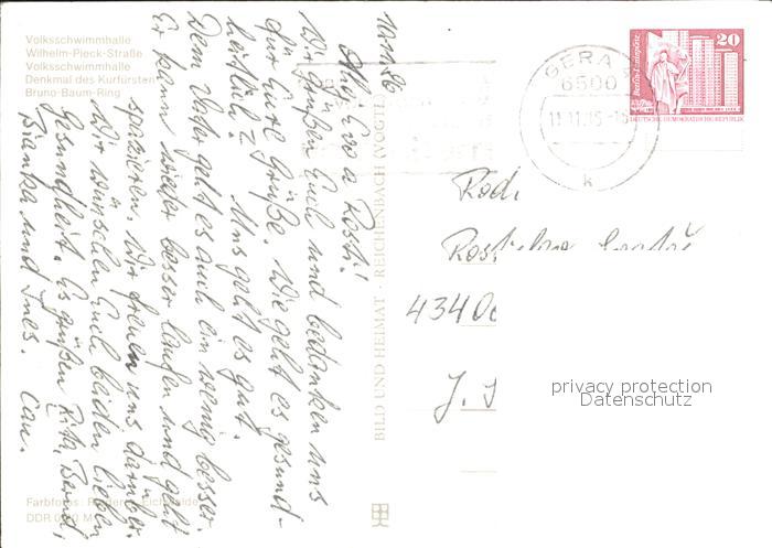 72331457 alte Postkarte Rathenow Volksschwimmhalle Wilhelm-Pieck-Strasse Denkmal Kurfuersten postalisch gelaufen Erhaltung siehe scans KatCode: 11110012063252