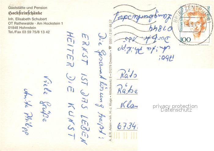73663599 alte Postkarte Rathewalde Gaststaette Pension Hocksteinschaenke Gaststube Terrasse Panorama postalisch gelaufen Erhaltung siehe scans [WerneD78] KatCode: 11110014287160