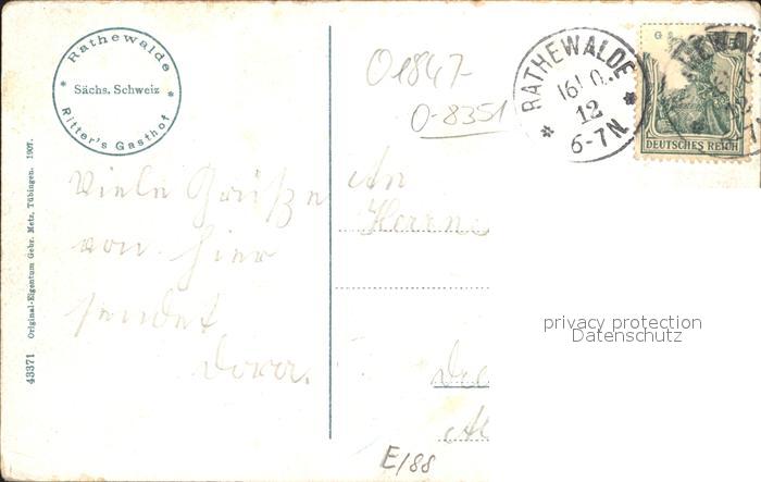 42249571 alte Postkarte Rathewalde Ritters Gasthof postalisch gelaufen Erhaltung siehe scans KatCode: 11110014287160