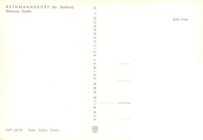 73871943 Rathmannsdorf Stassfurt Guestener Strasse postalisch nicht gelaufen Erhaltung siehe scans [WerneD78] KatCode: 11110015089310