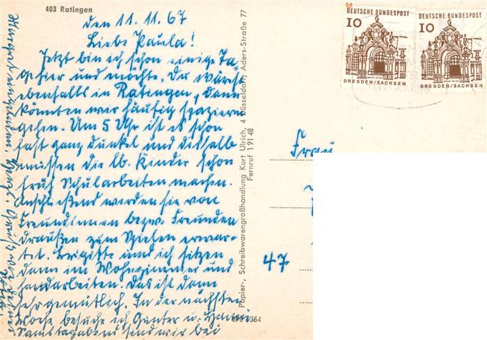73943133 alte Postkarte Ratingen Am Markt Stadtzentrum Rathaus Blauer See Freibad Schule postalisch gelaufen Erhaltung siehe scans [FriedD77] KatCode: 11110005158028