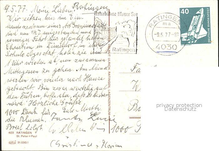 72009782 alte Postkarte Ratingen Kirche St Peter und Paul postalisch gelaufen KatCode: 11110005158028