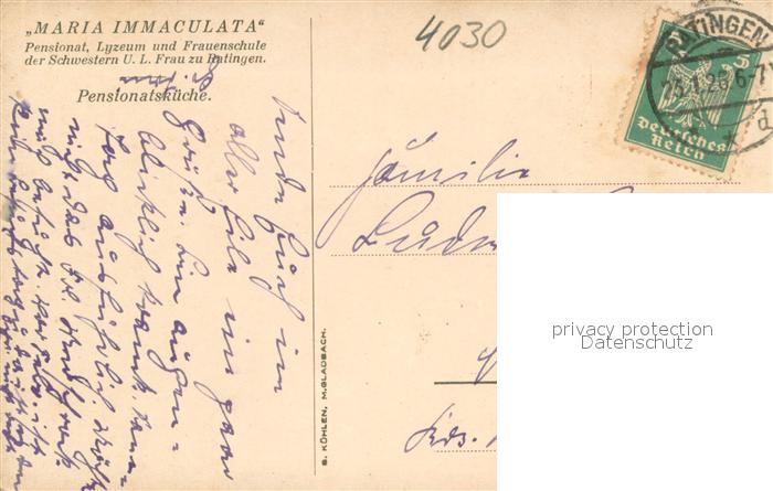 33699482 alte Postkarte Ratingen Maria Immaculata Frauenschule der Schwestern UL Frau Pensionatskueche postalisch gelaufen Erhaltung siehe scans [WerneD78] KatCode: 11110005158028
