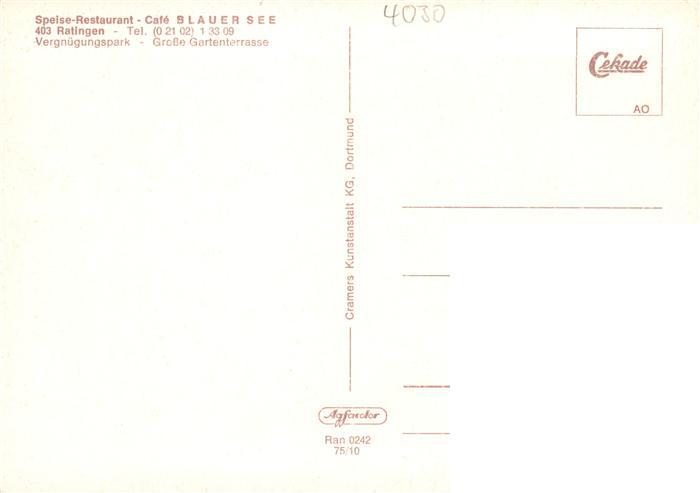 73894071 Ratingen Restaurant Blauer See Gastraeume Gondelteich postalisch nicht gelaufen Erhaltung siehe scans [WerneD78] KatCode: 11110005158028