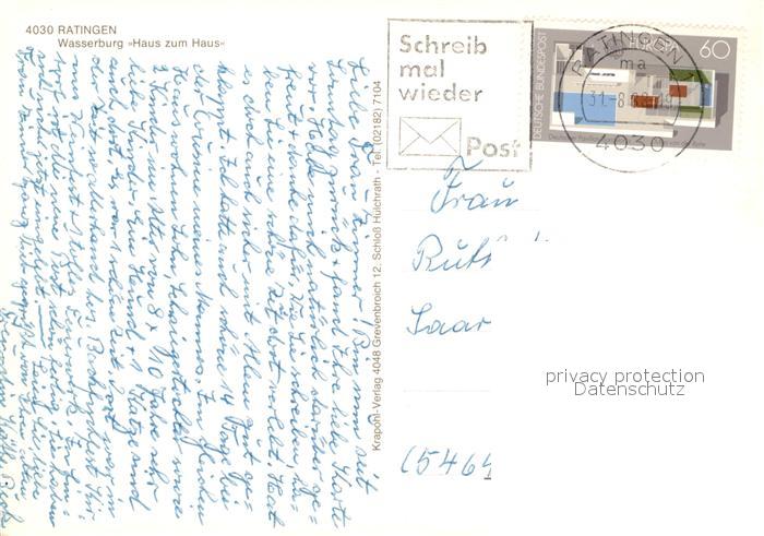 73262700 alte Postkarte Ratingen Wasserburg Haus zum Haus postalisch gelaufen Erhaltung siehe scans [LiesaD40] KatCode: 11110005158028