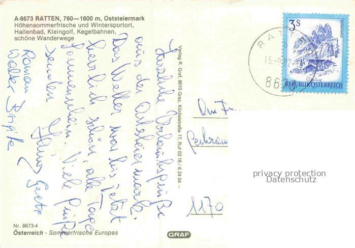 74156153 alte Postkarte Ratten Steiermark AT Panorama Minigolf Innenansicht Kirche Freibad Tennisplatz Sommerfrische postalisch gelaufen Erhaltung siehe scans [FriedD77] KatCode: 11390224061741