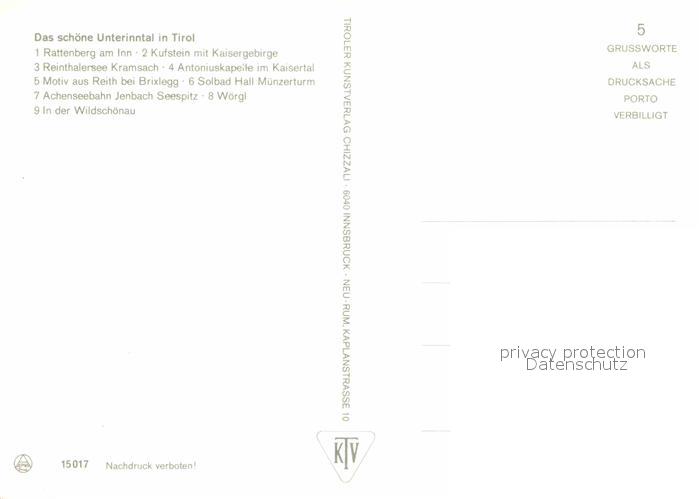 72900914 Rattenberg Inn Kufstein Reinthasersee Kramsach Antoniuskapelle Reith Solbad Hall Muenzerturm Achenseebahn Woergl Wildschoenau postalisch nicht gelaufen Erhaltung siehe scans [WerneD78] KatCode: 11110009183113