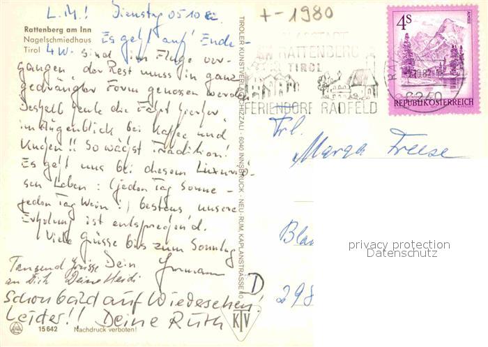72909185 alte Postkarte Rattenberg Inn Nagelschmiedhaus postalisch gelaufen Erhaltung siehe scans [NatalD47] KatCode: 11110009183113
