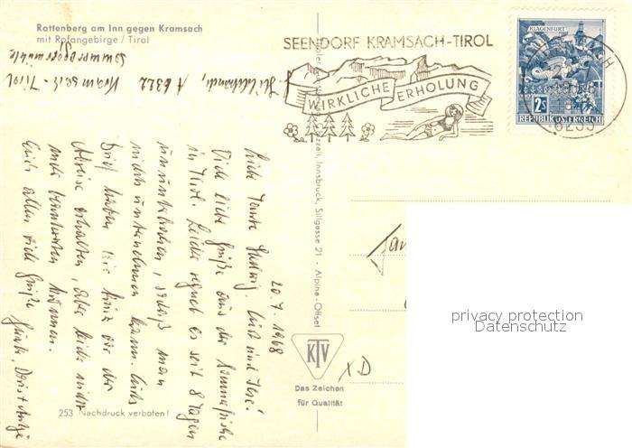 73577246 alte Postkarte Rattenberg Inn Panorama Blick gegen Kramsach und Rofangebirge postalisch gelaufen Erhaltung siehe scans [FriedD77] KatCode: 11110009183113