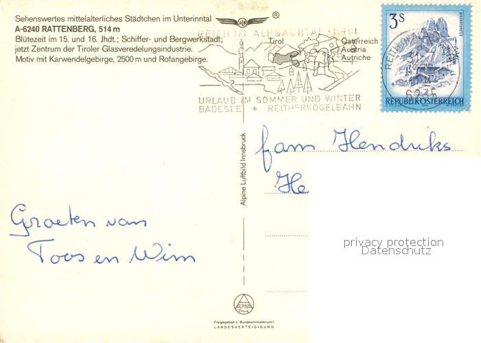 73224270 alte Postkarte Rattenberg Tirol Panorama Unterinntal Karwendelgebirge Rofangebirge Fliegeraufnahme postalisch gelaufen Erhaltung siehe scans [FriedD77] KatCode: 11390335070521