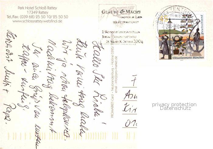 72725716 alte Postkarte Rattey Park-Hotel Schloss Rattey postalisch gelaufen Erhaltung siehe scans [LiesaD40] KatCode: 11110013055061