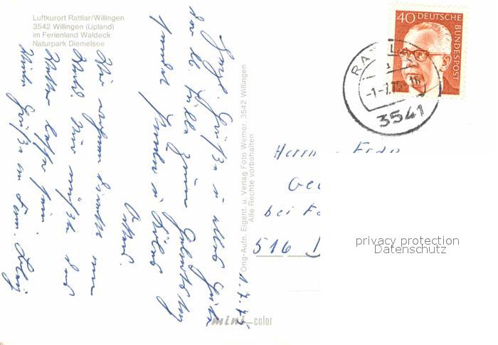 72890026 alte Postkarte Rattlar Landschaftspanorama Naturpark Diemelsee postalisch gelaufen Erhaltung siehe scans [FriedD77] KatCode: 11110006635022