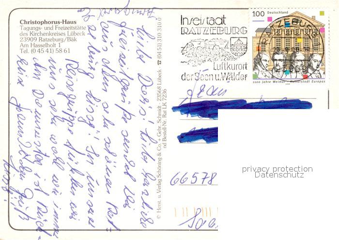 73054859 alte Postkarte Ratzeburg Christophorus Haus Fliegeraufnahme postalisch gelaufen Erhaltung siehe scans [WerneD78] KatCode: 11110001053100