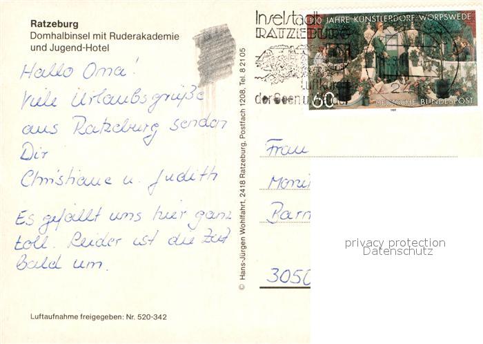 73018881 alte Postkarte Ratzeburg Dom Ruderakademie Jugend-Hotel postalisch gelaufen Erhaltung siehe scans [NatalD47] KatCode: 11110001053100