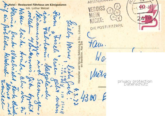 73543620 alte Postkarte Ratzeburg Faehrhaus am Koenigsdamm Gastraeume postalisch gelaufen Erhaltung siehe scans [WerneD78] KatCode: 11110001053100