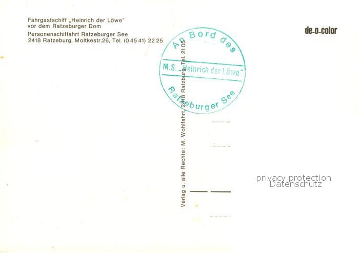 73224607 Ratzeburg Fahrgastschiff Heinrich der Loewe Dom postalisch nicht gelaufen Erhaltung siehe scans [KathaD81] KatCode: 11110001053100