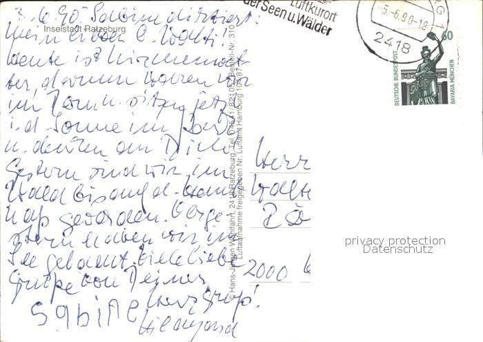 alte Postkarte Ratzeburg Fliegeraufnahme postalisch gelaufen Erhaltung siehe scans