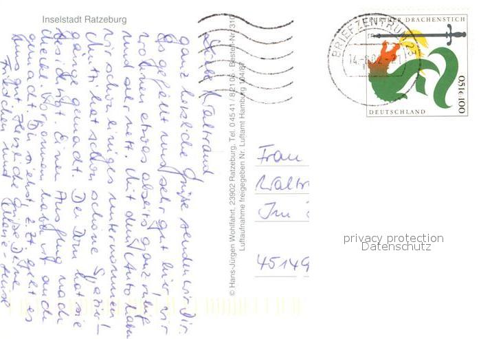 73322203 alte Postkarte Ratzeburg Fliegeraufnahme postalisch gelaufen Erhaltung siehe scans [KathaD81] KatCode: 11110001053100